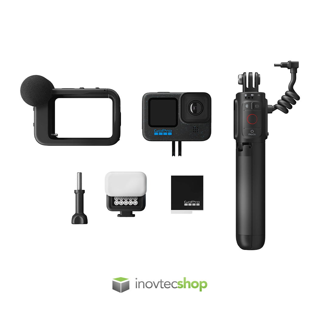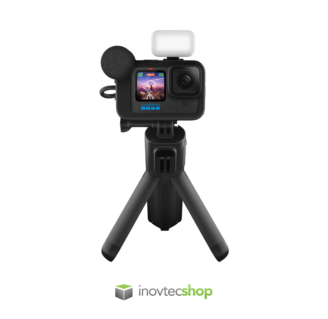 El Paquete Creator Edition de GoPro HERO12 Black te proporciona la cámara de acción HERO12 Black, el Media Mod, el Light Mod y la Empuñadura de Batería Volta. Estos accesorios incluidos facilitan a los creadores de contenido emprender su próxima aventura y capturar video y audio de alta calidad en 5.3K.